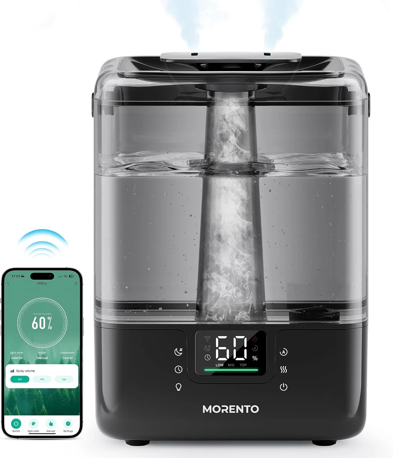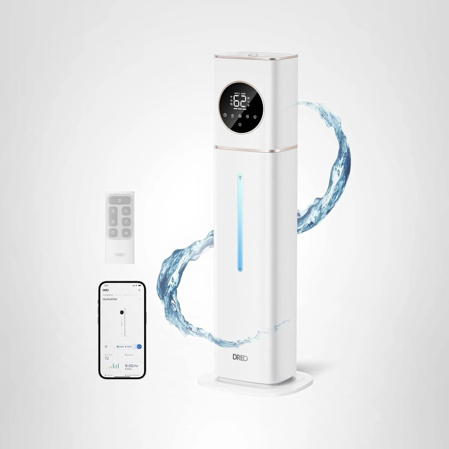 The Dreo HM717S is a flagship smart humidifier designed for large rooms up to 600 ft². Its hybrid mist capability sets it apart—switch between warm mist (up to 133°F in just 8 minutes) for winter and cool mist for year-round comfort. If you suffer from sinus issues or live in dry climates, the warm mist can make a noticeable difference.