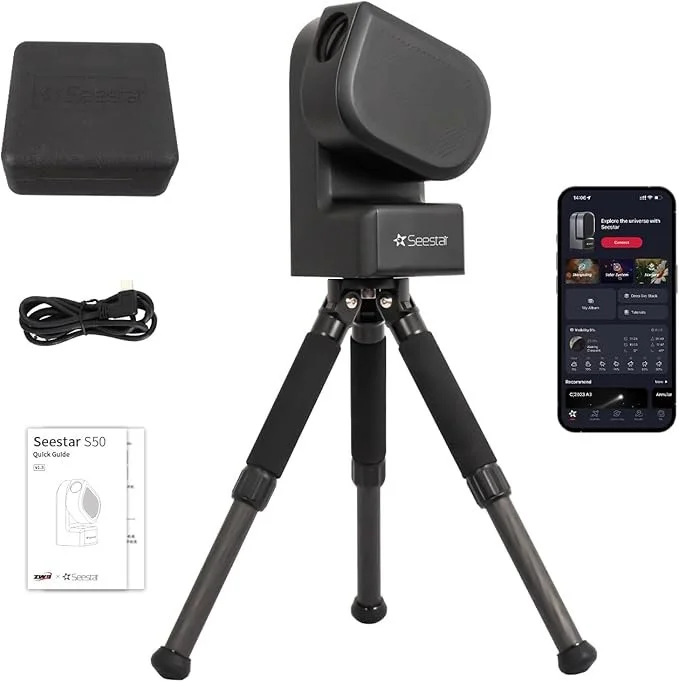 The ZWO Seestar S50 brings professional-grade optics and automated tracking into a 2.5kg package, ideal for both beginners and seasoned skywatchers. This telescope is essentially your personal cosmic assistant.