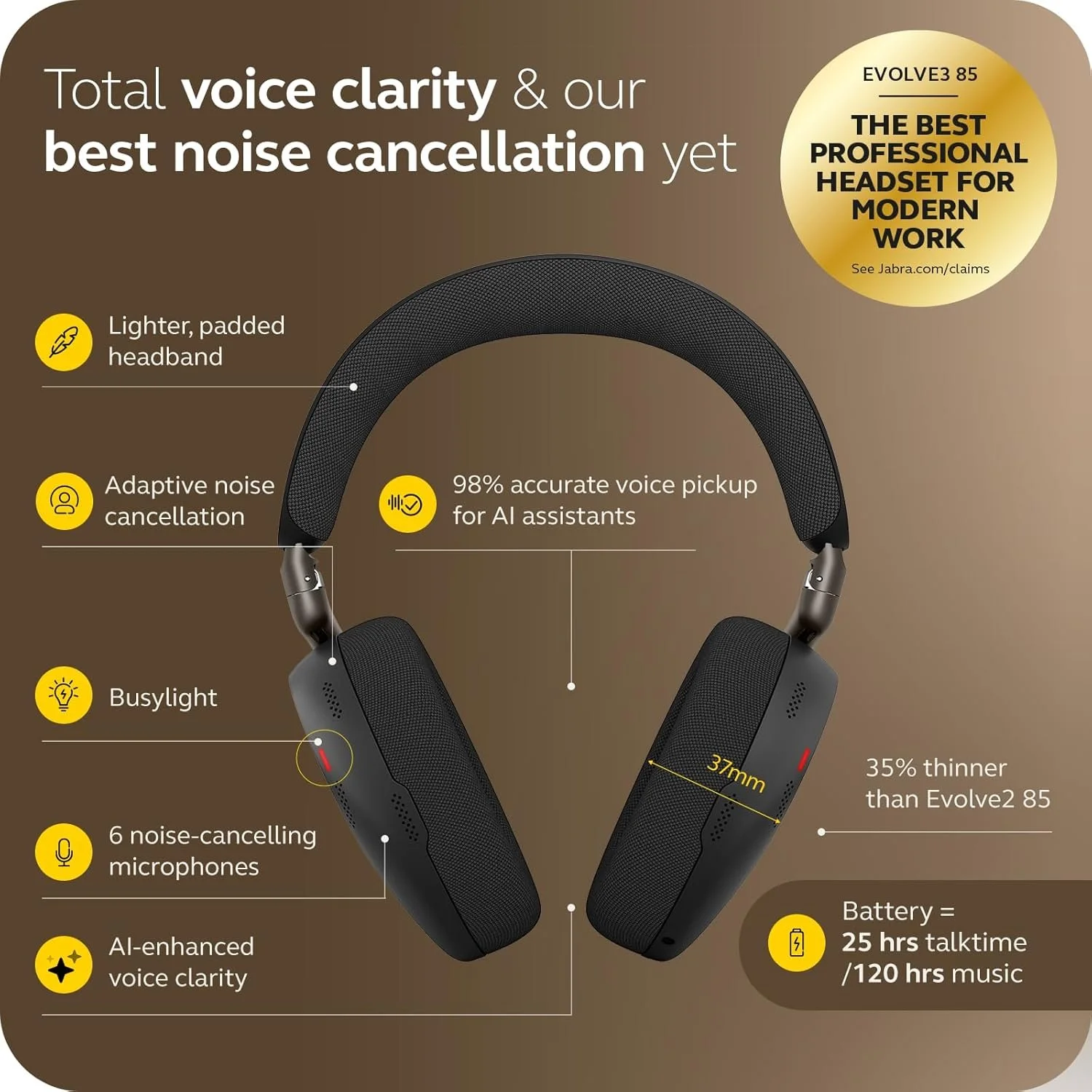 The Jabra Evolve3 85 is designed for a completely different purpose compared to most wireless headphones on this list. Instead of focusing purely on music, it prioritizes communication, productivity, and clarity for professionals working in busy environments.